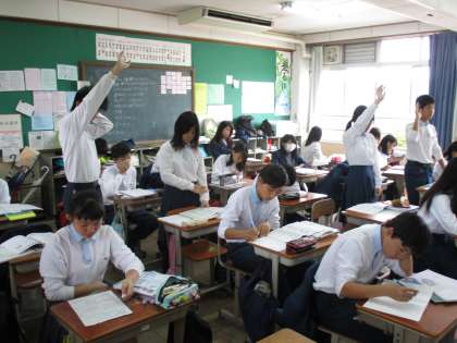 英語の時間には、相変わらず反復学習が行われています。