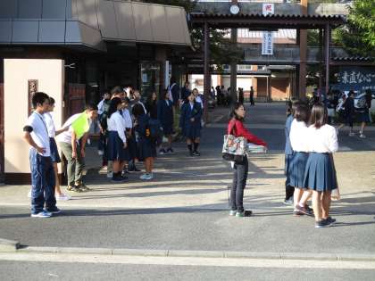 朝から笑顔が溢れ活気のある登校の様子です。