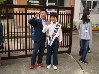 今日から朝の校門で生徒会役員の立候補者が選挙活動を始めています。