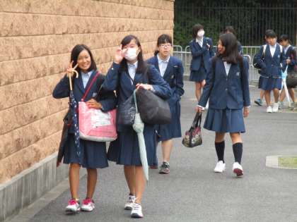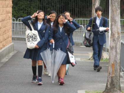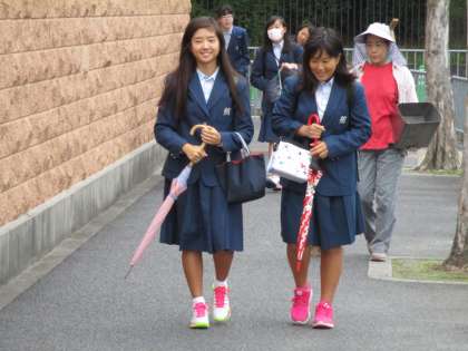 生徒たちは傘を持って登校してきます。
