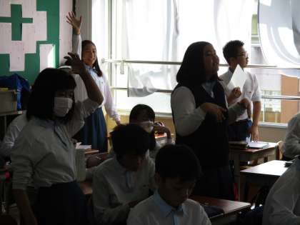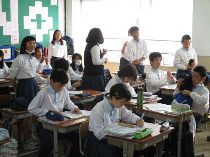 休憩時間と4時間目が始まったところの1−3の英語の授業の様子です。