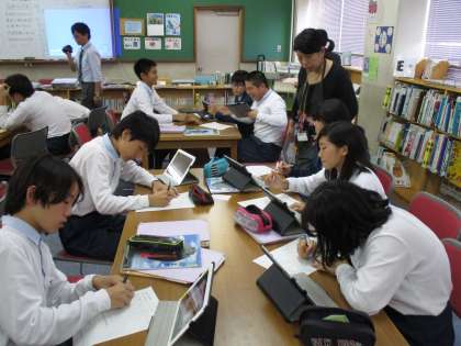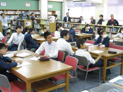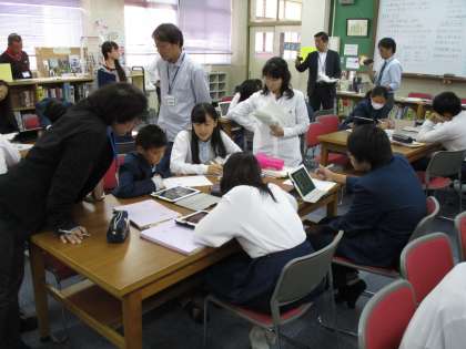図書館での学習、ipadを使ったICT教育など、話題性の多い授業をしてくれました。生徒もよく活動し、来校された先生方には参考になることが多かったと思います。