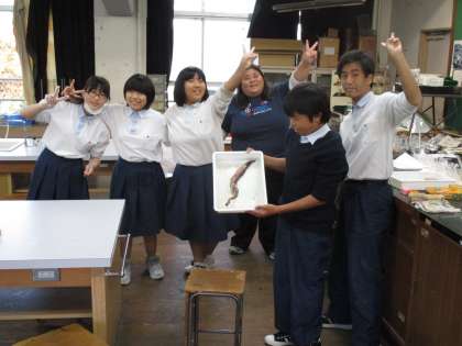 サイエンス部はイカの解剖をしていました。