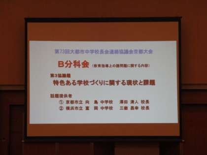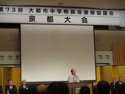 10・11日の両日、京都駅前のグランヴィア京都ホテルを会場として「第73回大都市中学校長会連絡協議会 京都大会」が行われ、今回私は話題提供者として本校の取組や31年開校の進行について発表しました。