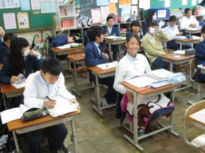 先生が、総括考査、成績のことについての話をしているところで、子どもたちはピリピリしていました。