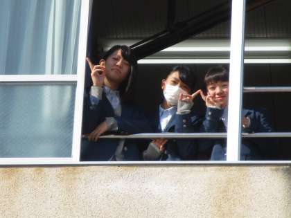 グランドで男の子たちと話していると、4階の教室から声がしました。