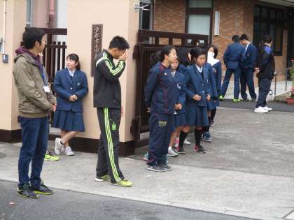 このグループは、勉強をしながら登校してきたようです。