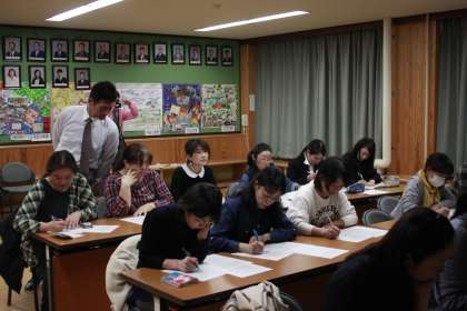 授業者が授業への心構えを述べ、資料を読みます。