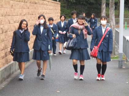 多くの生徒がノートやプリントを手に登校してきます。