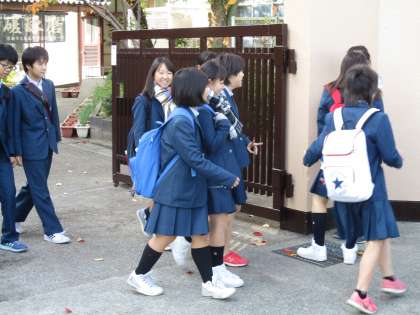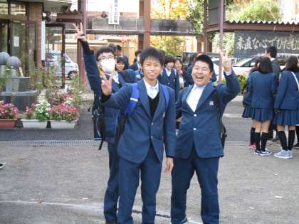 こちらは見ていませんが、ピースサインを出している生徒がいます。