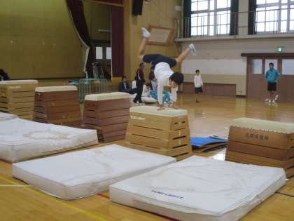 中学校で行う器械体操は、練習すれば必ずできるようになるので、怖がらず頑張ってみてください。できた喜びが大きいのも器械体操のよいところです。
