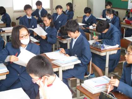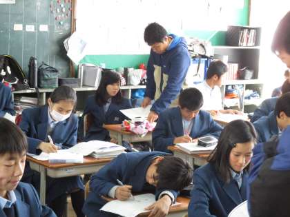 2組は数学。T・T(ティーム・ティーチング)で授業を行っています。