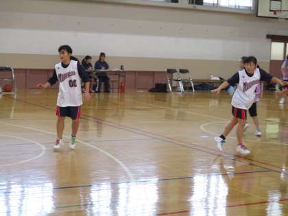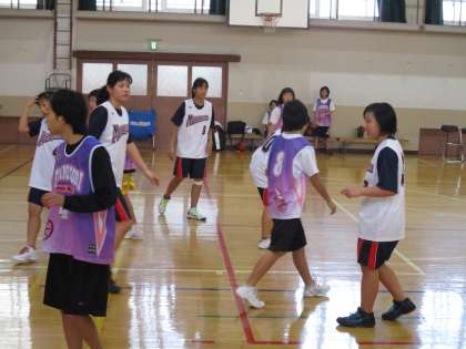 女子バスケットは藤森中学校を招いて練習試合です。