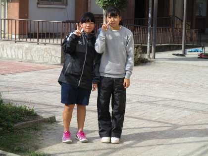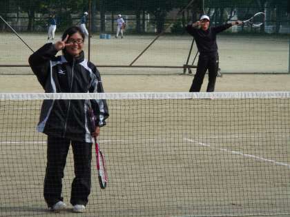 その人たちはペアで簡単な練習をしたり、他の人の試合を見て順番を待ちます。