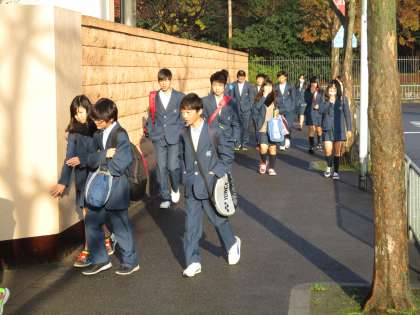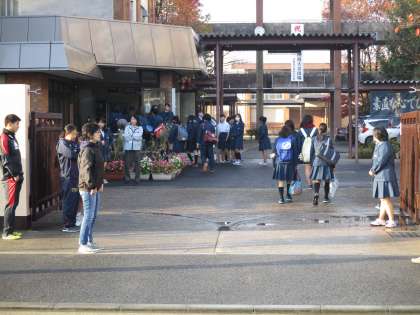 新しい一週間を迎え、生徒会の役員が校門であいさつをしてくれます。