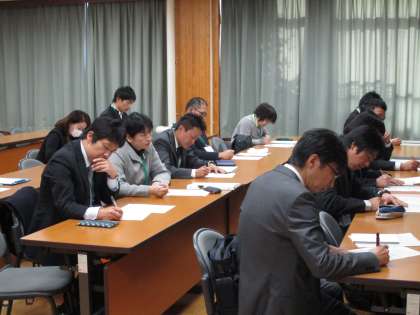 みなさん、現職の学校の先生方で、昨年度末まで各学校の中心となって頑張っておられた方々です。熱心に聞き入っておられました。