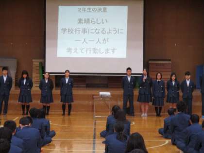 前に出ている人たちは、この学年を引っ張ってくれている「向島16」です。