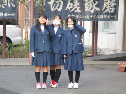 今朝、生徒会本部の人たちは二の丸小学校であいさつ運動を展開しています。
