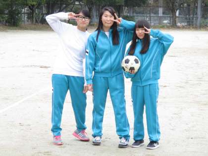 3年の女子が体育で今日もサッカーに取り組んでいます。