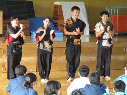 世界の文化について知る前に我が国の文化を深く知る必要があると、京都の文化をふんだんに取り入れた京都学生ダンスの「京炎そでふれ」を学びました。