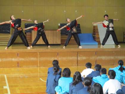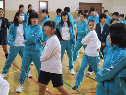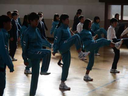 近頃の生徒はダンスにに対する抵抗感はあまりありません。男女とも直ぐに食いつきました。前任校で、3年生が体育大会の集団演技でこのダンスを披露したことを思いだしながら見ていました。