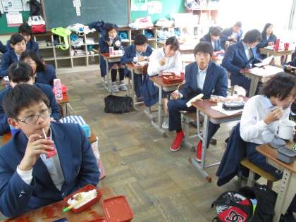 本校の場合、新しい学校になると全員が自校調理給食(小学校のような)になります。お母さんのお弁当を見るのもあと2年半ですね。