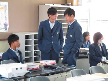 4階の音楽室前で、ちょうど出てきた1年生と藤田先生です。