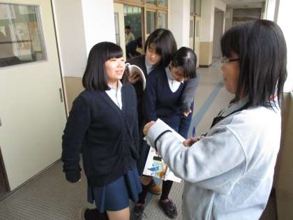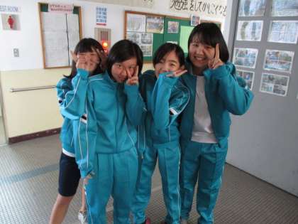 2年生女子が体育に向います。「校長先生、カメラもってる?」持っててよかった!