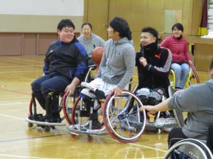 5・6時間目、1年生が車いすバスケットボールの体験をしました。