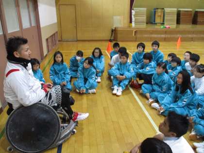 3クラスがそれぞれ別々に分かれて3人の選手に色々と質問をします。