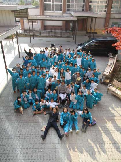 体育館の外で全員そろっての記念写真撮影です。