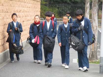 襟元は大きなマフラーでくるんでいるのに、下半身は素脚で、このアンバランスな感じは、中学生と高校生の特徴のようです。