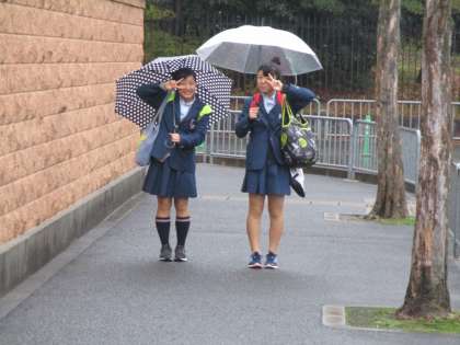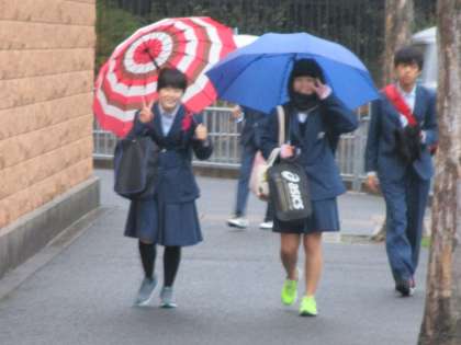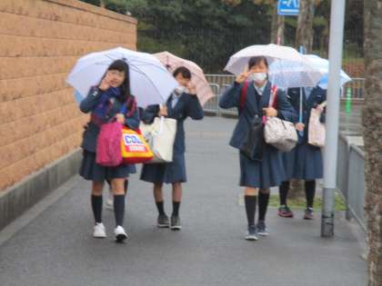みんな、傘を手に元気に登校してきます。