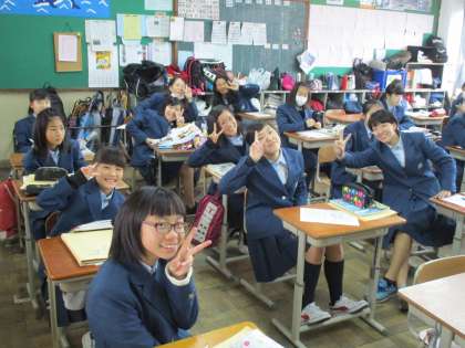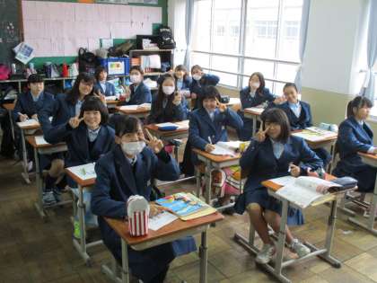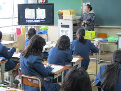1・2組は体育。女子ばかり教室で保健の授業です。