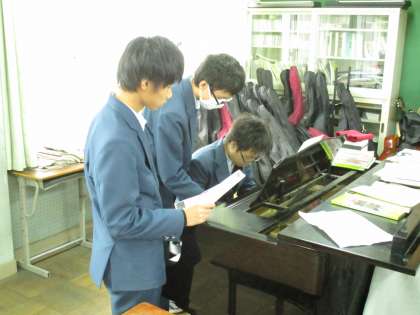 1組に長居をし過ぎて、授業時間が終了しました。音楽室に残っていた人たちです。
