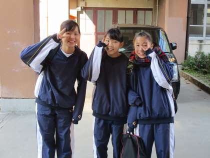 午後から練習予定の女子バスケットボール部の子たちが、12時になる前から徐々にやって来ています。