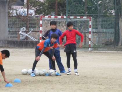 グランドではラグビー部が練習を始めています。