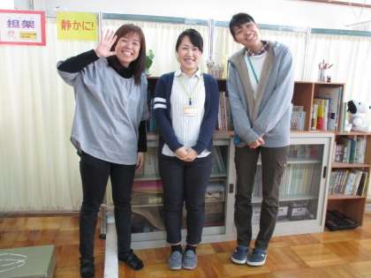 京都教師塾で先生になるための勉強をしている人が、学校実地研修で本校に来ています。写真の真ん中の人で、吉田和美先生です。