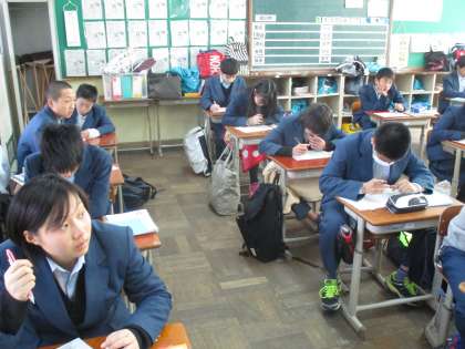 2年生の授業の様子からアップします。英語と理科の授業の様子です。