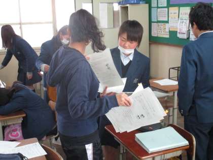 テスト対策のプリントが配られています。
