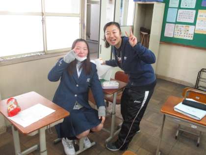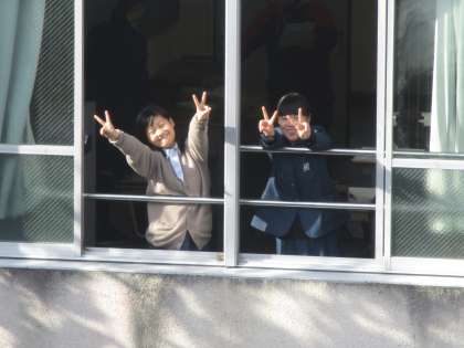 中庭を挟んだ北校舎から声が聞こえました。2年生です。