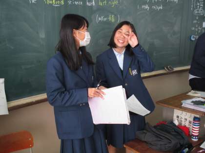 英語の授業の最後には、学習した内容を用いて使い方の練習をしていました。観ていると楽しくて、ついつい長居をしてしまったほどです。