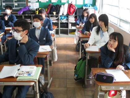 4・5組は教室の授業。5組は社会科で4組は音楽です。
