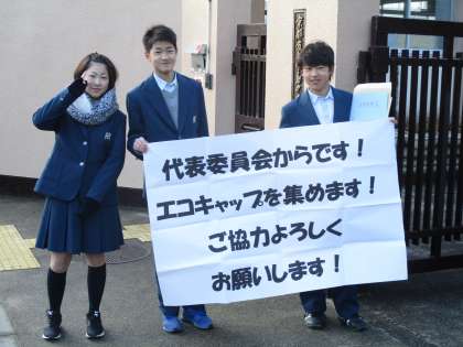 「水曜日はエコキャップの回収日です。忘れずに持ってきてくださ〜い!」