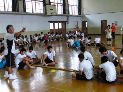 昨晩の雨のせいで、グランド状態が悪く、3年の体育大会に向けた学年練習は、体育館で行われた。学年種目である「綱引き」に精一杯の汗を流していた。