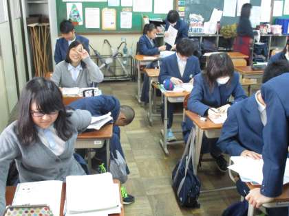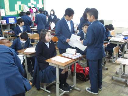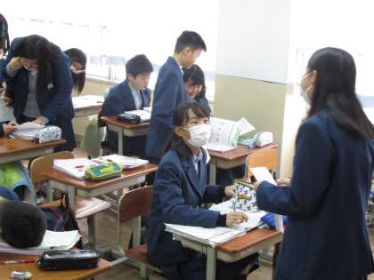 今日のまとめをしています。学習した内容をお互い自由に言い合っている場面です。
