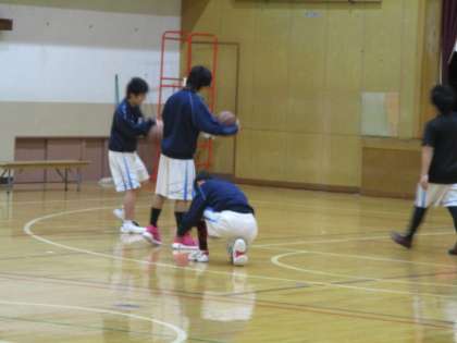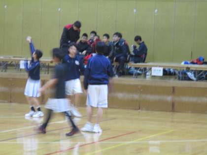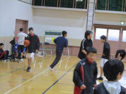 体育館では男子バスケットボール部が、泉川中学校と栗陵中学校を招いて練習試合です。本来は5校で交流戦を行う予定だったのですが雪の影響で3校になったと顧問の先生から聞きました。