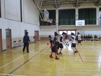 体育館では、男子バスケットボール部が大淀中学校を招いて練習試合をしています。