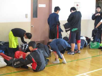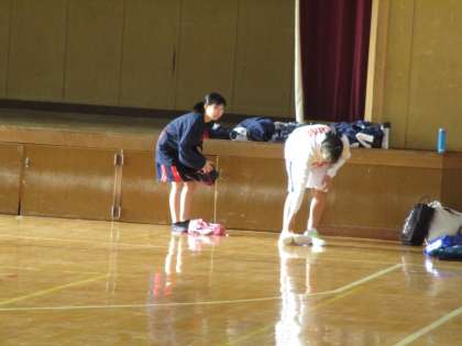 体育館では、男女のバスケットボール部が活動を始めようとしています。