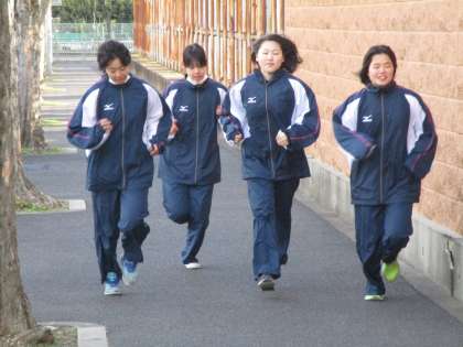 バレー部は、今日はコートが使えないようで、学校外周のランニングです。